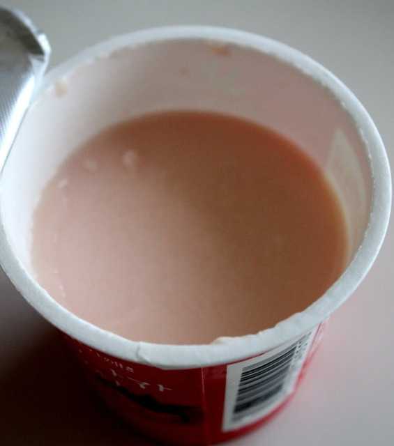 粉紅色的優格,看起來還不錯,不過真的有一陣一陣的番茄香味飄出來.....吃了一口後,macaron總算了解這家廠商為什麼敢出這一項商品了,其實番茄和優格本來就很合!!