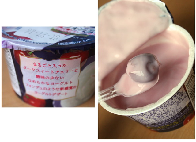 有點奢侈的小岩井櫻桃優格,本來以為揭開蓋子會只有一片櫻桃皮飄在優格上方,結果....