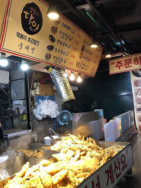 一間攤子賣著許多東西雞蛋,魚糕,炒年糕,血腸等在路邊攤的定番商品,有內用區,macaron因為怕吃不下,只點了一份魚糕。